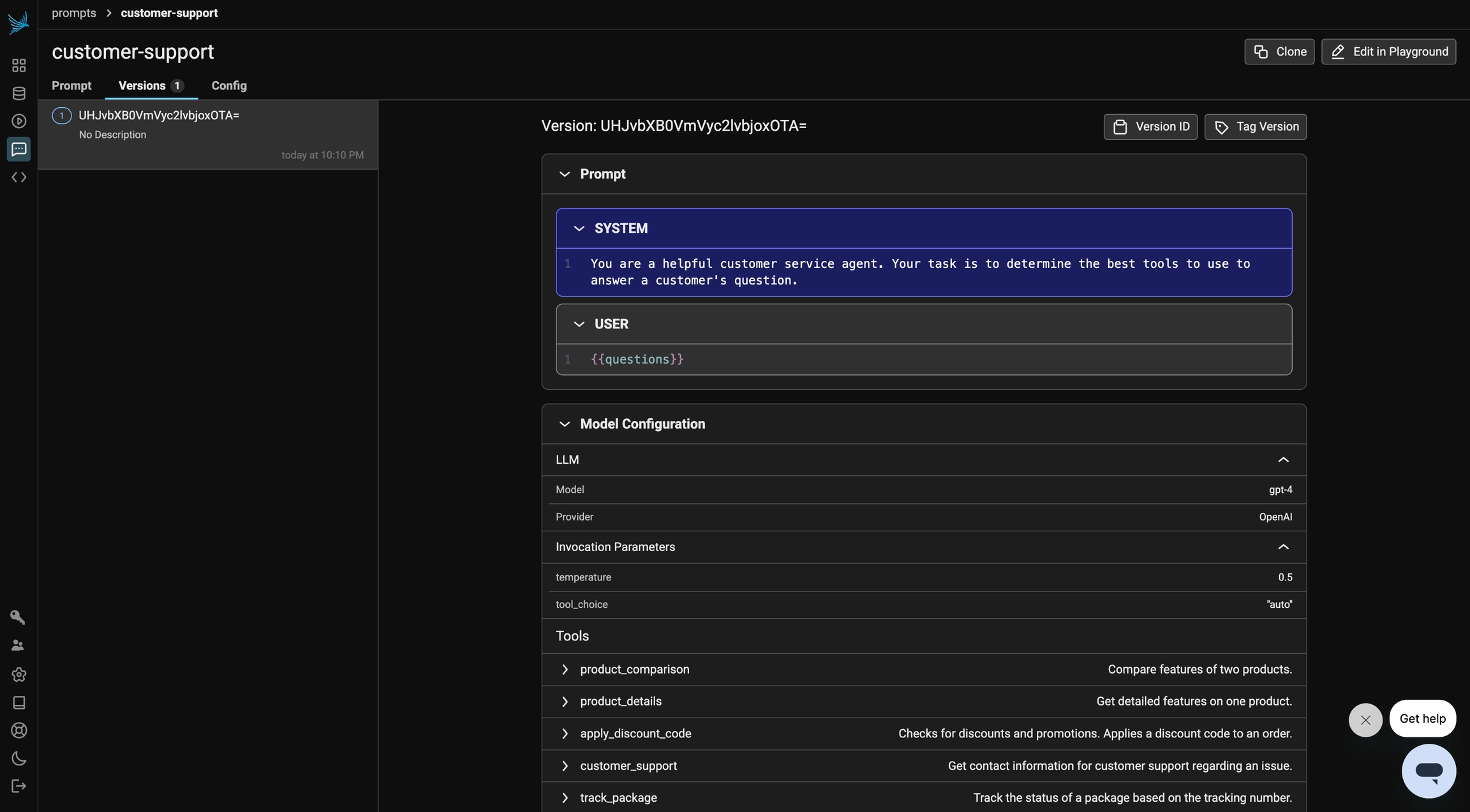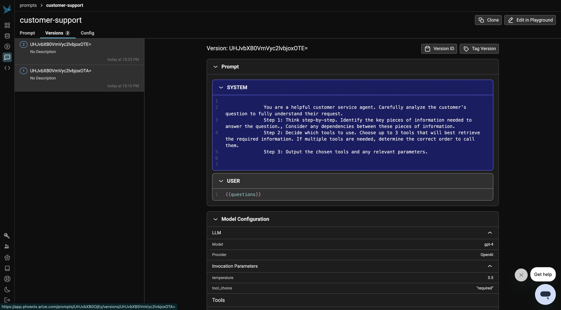 This dataset contains 20 customer service questions that a customer might ask a store’s chatbot. As we dive into ReAct prompting, we’ll use these questions to guide the LLM in selecting the appropriate tools. Here, we also import the Phoenix Client, which enables us to create and modify prompts directly within the notebook while seamlessly syncing changes to the Phoenix UI. After running this cell, the dataset should will be under the Datasets tab in Phoenix.Define Tools