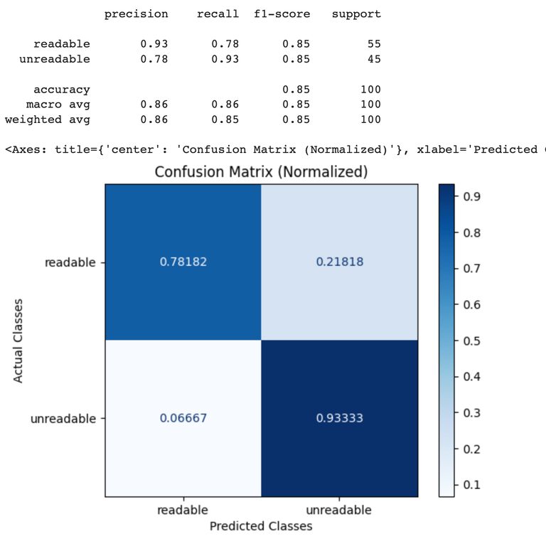 This benchmark was obtained using notebook below. It was run using an OpenAI Human Eval dataset as a ground truth dataset. Each example in the dataset was evaluating using theCODE_READABILITY_PROMPT_TEMPLATE above, then the resulting labels were compared against the ground truth label in the benchmark dataset to generate the confusion matrices below.