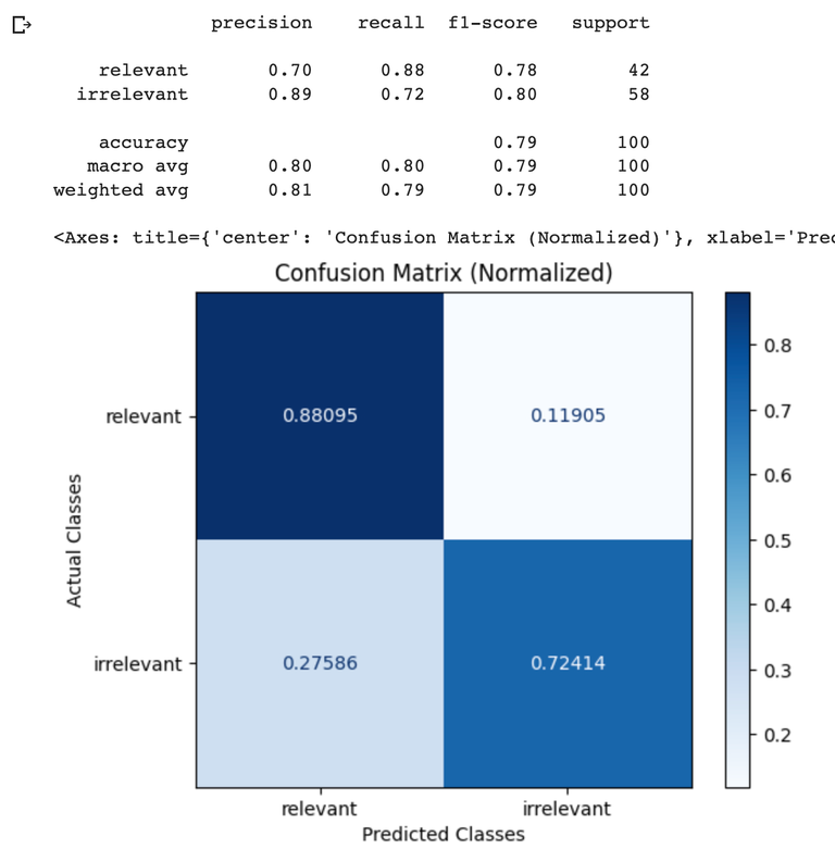 This benchmark was obtained using notebook below. It was run using the WikiQA dataset as a ground truth dataset. Each example in the dataset was evaluating using theRAG_RELEVANCY_PROMPT_TEMPLATE above, then the resulting labels were compared against the ground truth label in the WikiQA dataset to generate the confusion matrices below.