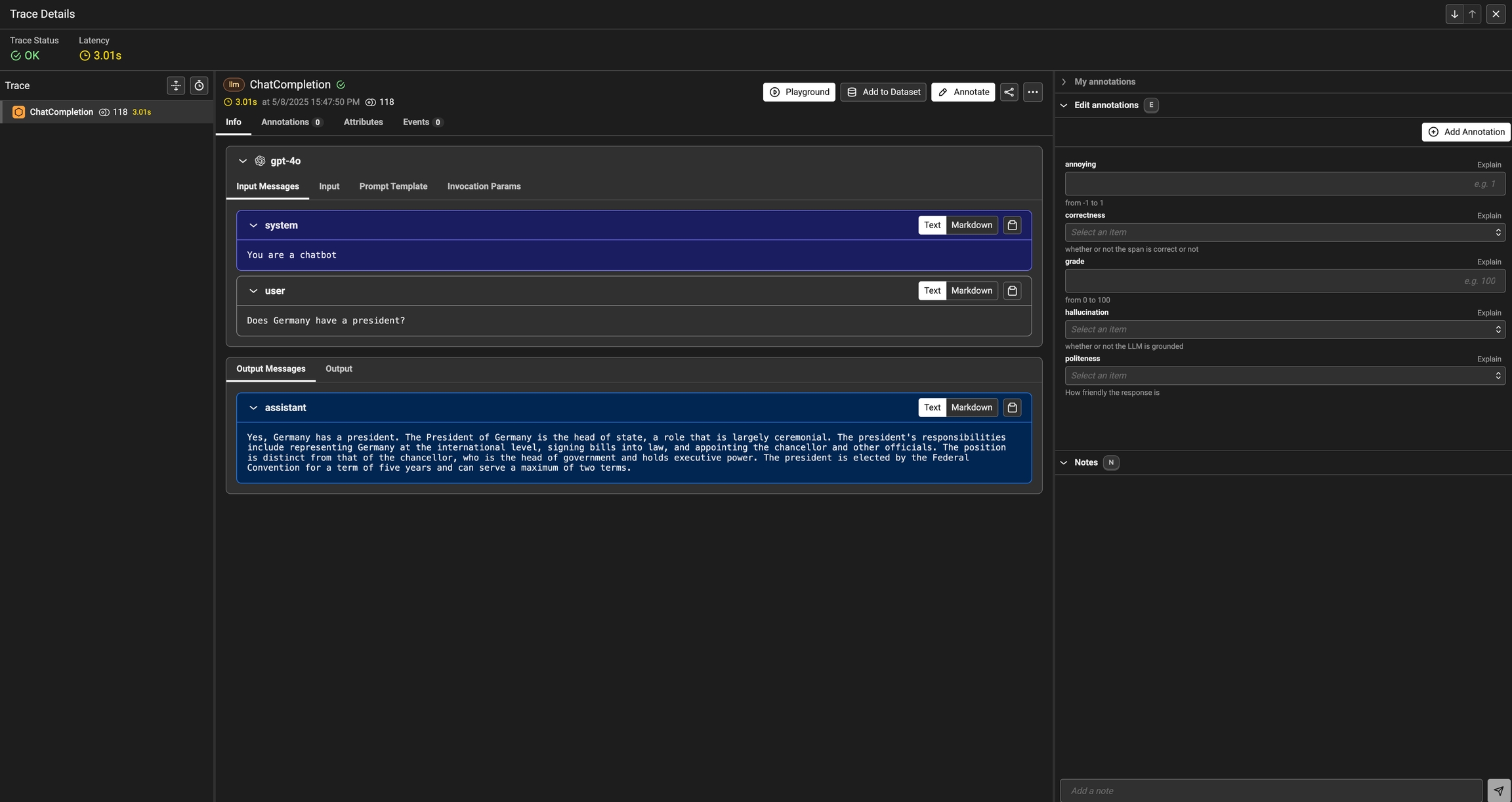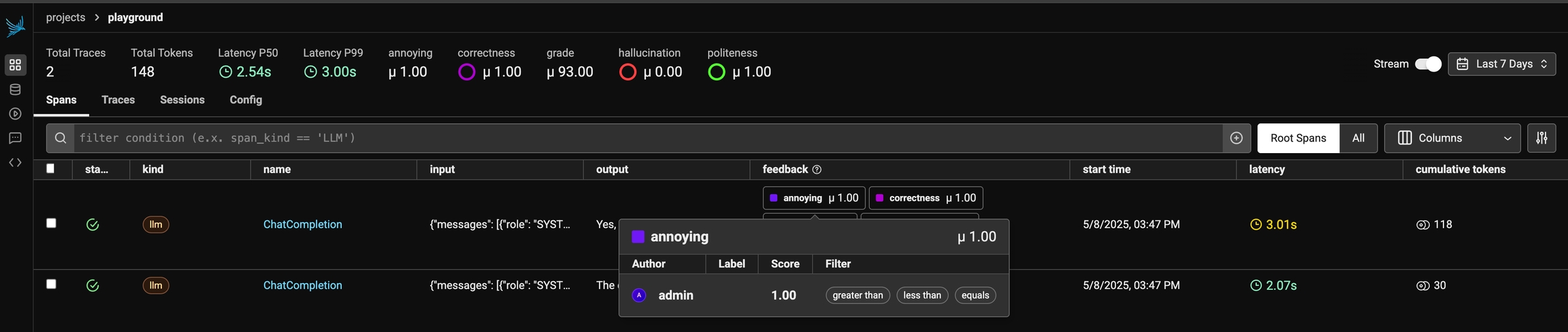 Once you have collected feedback in the form of annotations, you can filter your traces by the annotation values to narrow down to interesting samples (e.x. llm spans that are incorrect). Once filtered down to a sample of spans, you can export your selection to a dataset, which in turn can be used for things like experimentation, fine-tuning, or building a human-aligned eval.