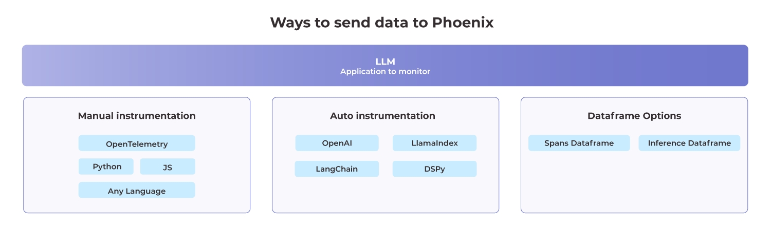 - The collector (e.g., Phoenix) receives the spans exported by your application.